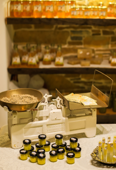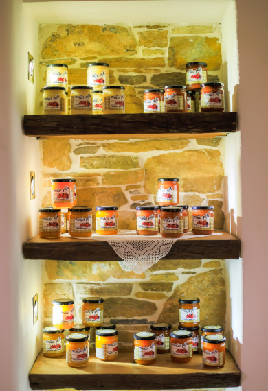 At its production facility it has installed modern technical equipment and a shop. Here one can buy the excellent honey and all its derivatives, such as pollen, propolis, honey, but also the local fragrant candle and its soothing ointments. Also, the store Stones honey has its traditional products such as homemade spoon sweets and jams. Pastels for weddings with sesame and thyme honey of Kythnos. Local capers and herbs gathered by the owner himself, warm wine and handmade liqueurs.